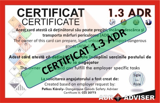 Mențiune: Conducătorii auto care nu dețin certificat de pregătire profesională ADR, DAR transportă mărfuri periculoase sub 1000 de puncte conform cap.1.1.3.6 ADR sau ambalate în cantități limitate -LQ conf.cap.3.4 trebuie să fi instruiți 1.3ADR